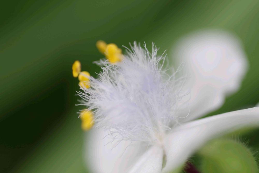 白い大きなツユクサなんですが、蕊がもふもふの芯のところが紫なんです☝️