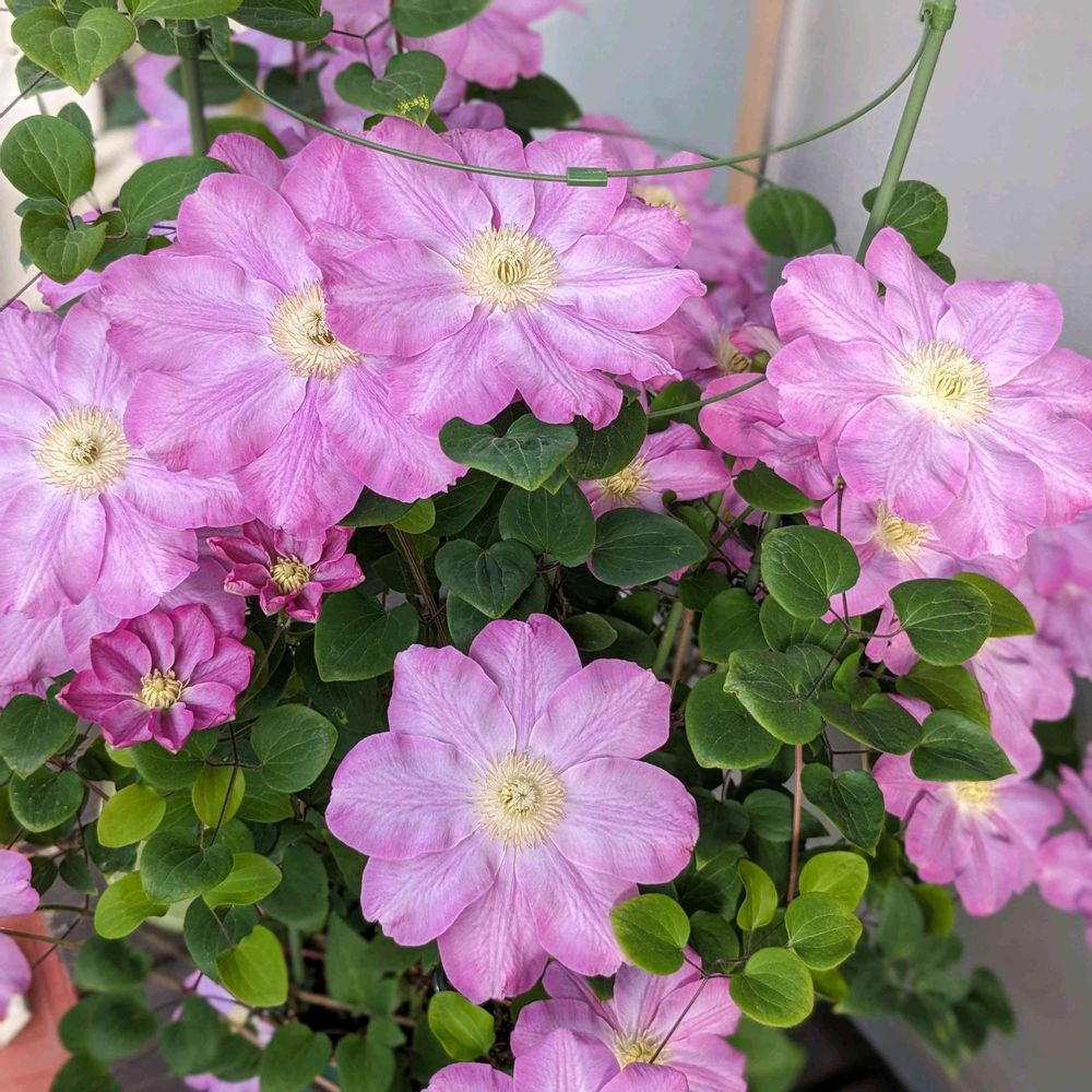 ピンクのクレマチス、明るくて可愛い💗ナハトムジークは大人っぽくて