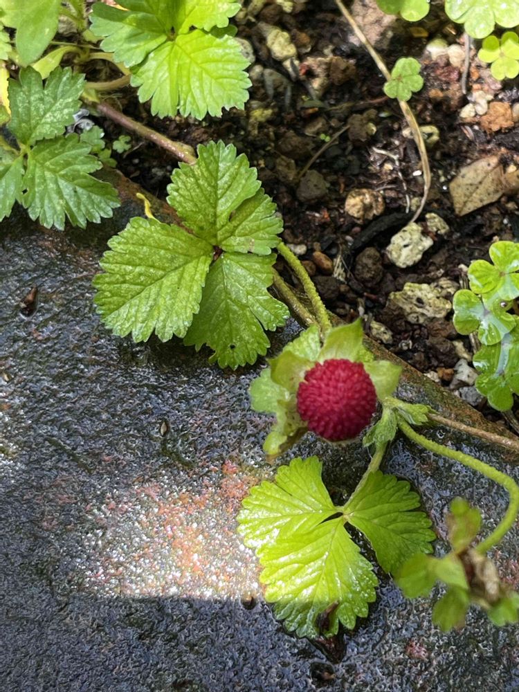 初めてヘビイチゴが🍓庭に実っていました╰(*´︶`*)╯🍓🤭