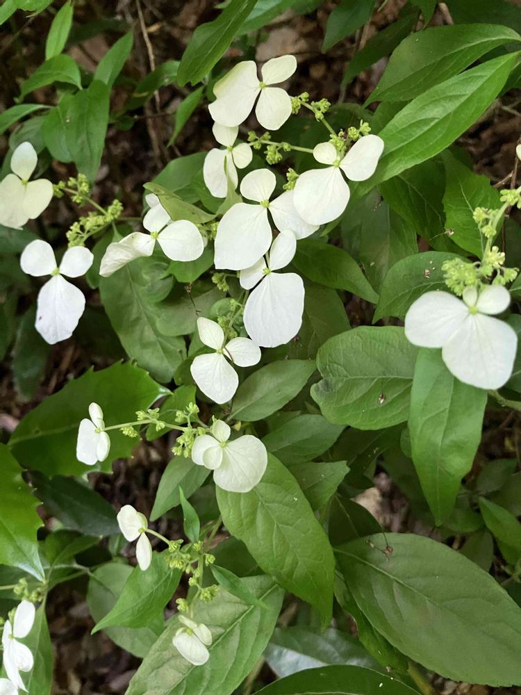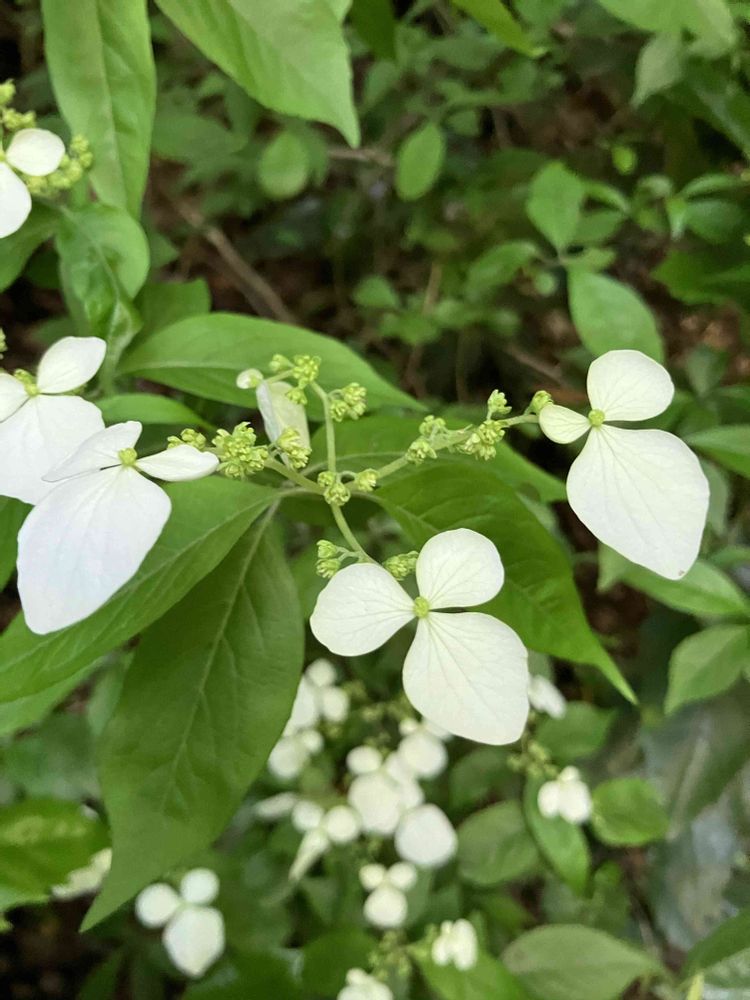ガクウツギ?があるのですね。花びらのつき方、ほんと!蝶のようですね。