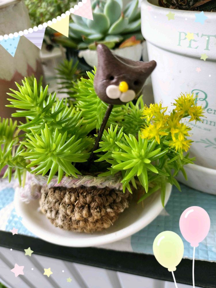 2枚目~黄金細葉万年草にお花が😍💛見落す所😆💦 応援隊は月の雫ちゃんのにゃんこピック(=^・^=)🐾