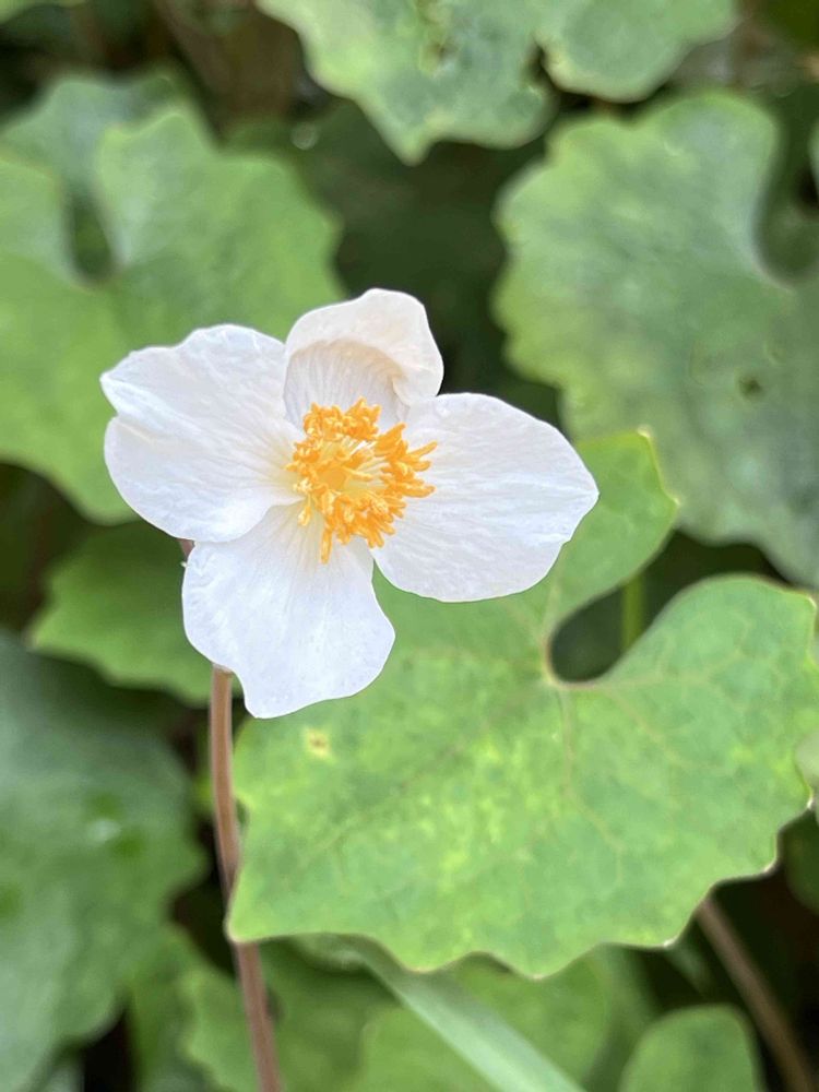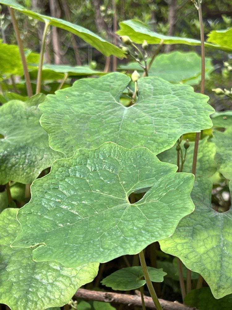 お花は清楚な感じですが、ガメラの甲羅のような葉っぱ