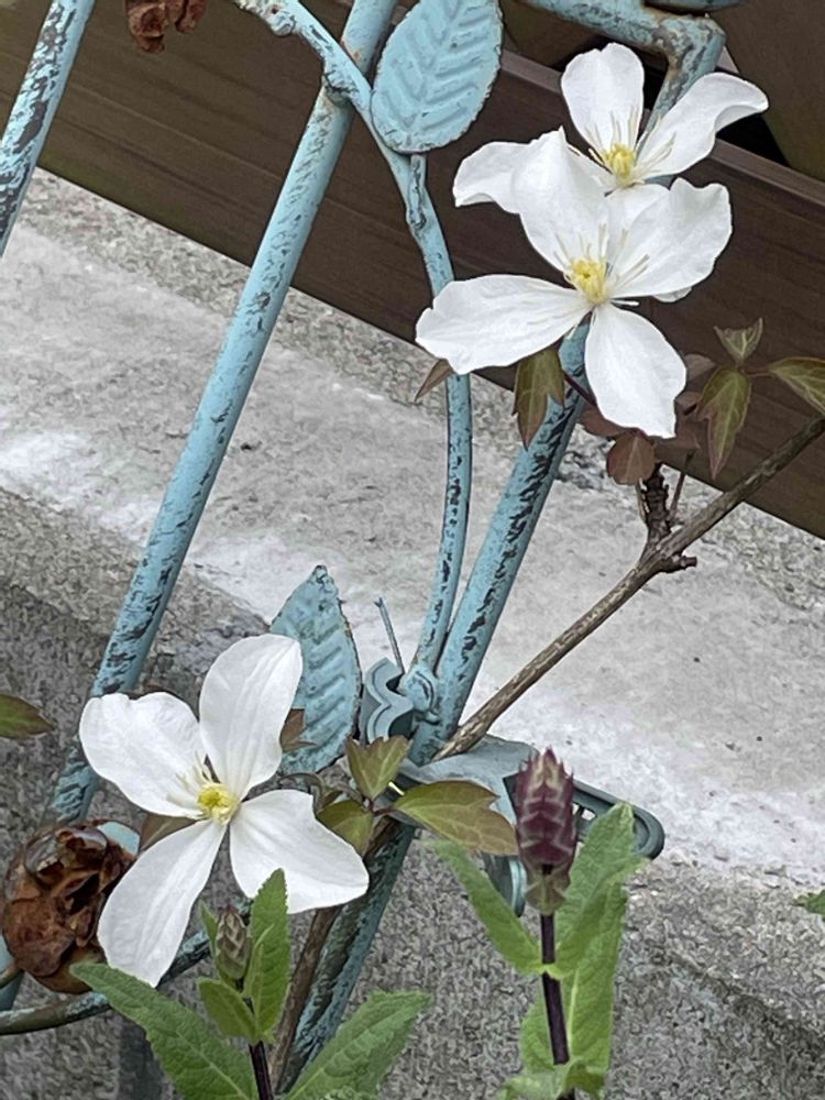 我が家のクレマチス。寂しげだけど何とか咲きました!