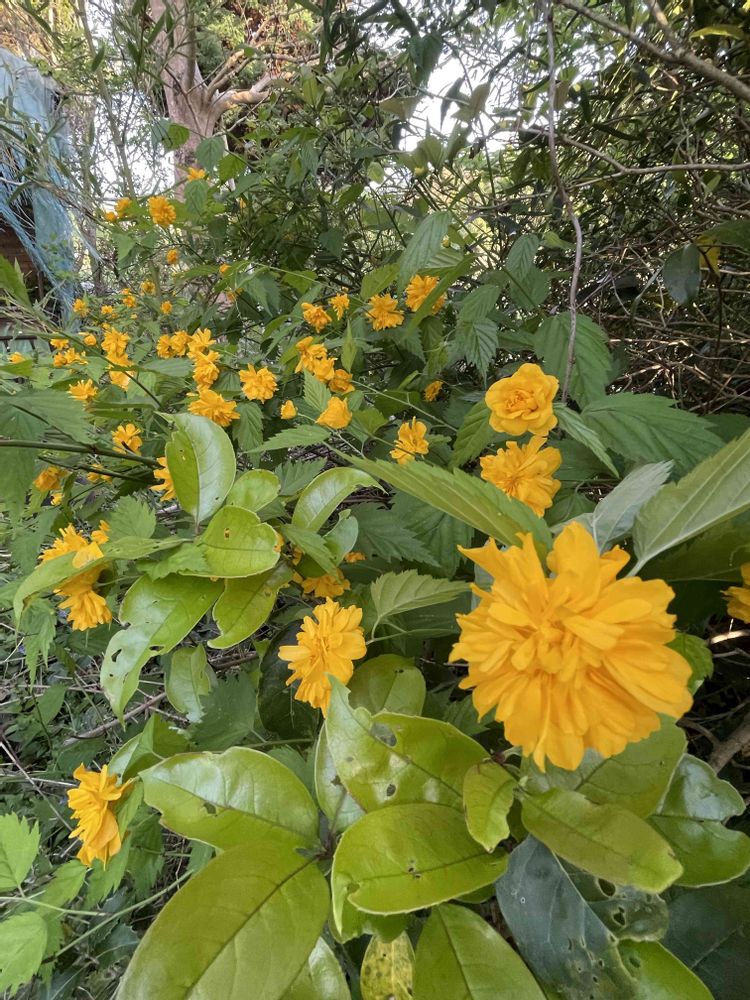 かっこいいよしくんがいつも見張り番🤭してる素敵な門扉、 ヤマブキ💛💛💛
