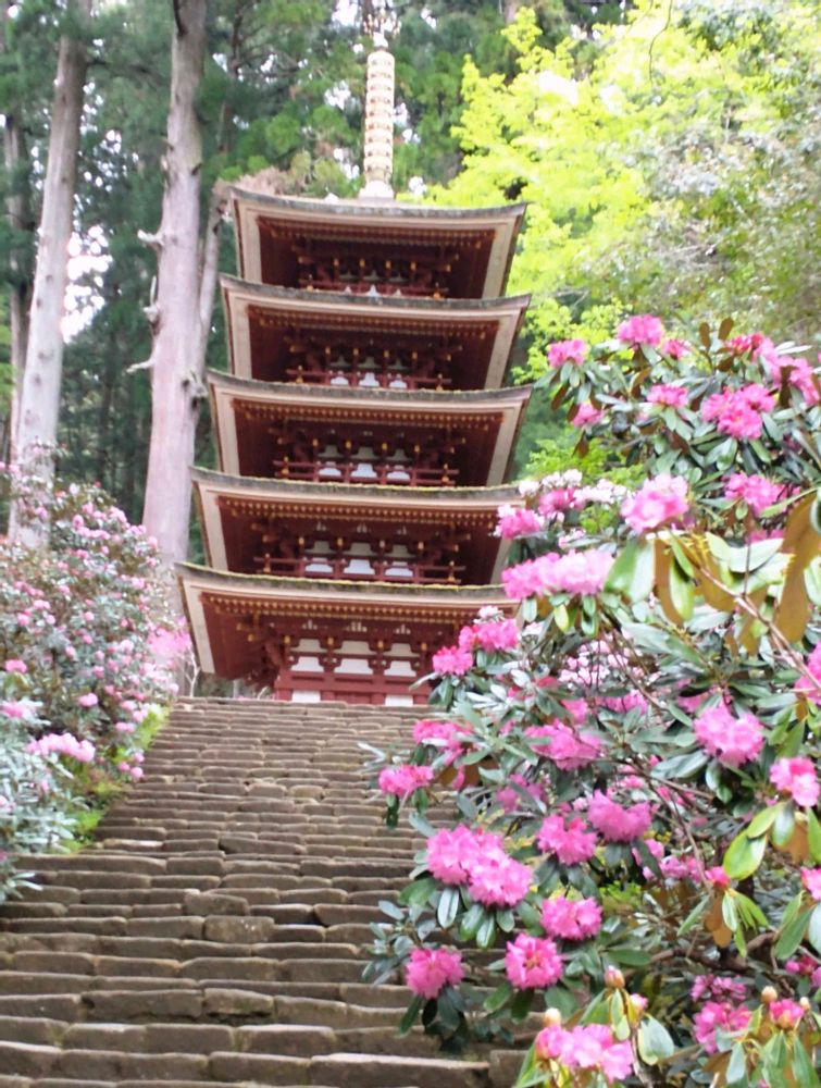 五重塔、いいですよね。この角度からの塔もシャクナゲも美しいですヽ(`▽´)/
