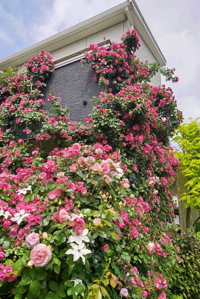 これだけの薔薇に囲まれた外壁はここしか見たことありません。