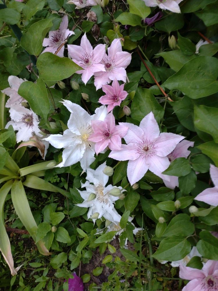 色々なクレマチスが華やかに咲いてますね〜💓ピンクと白のコラボが優しい雰囲気でいいですね💕