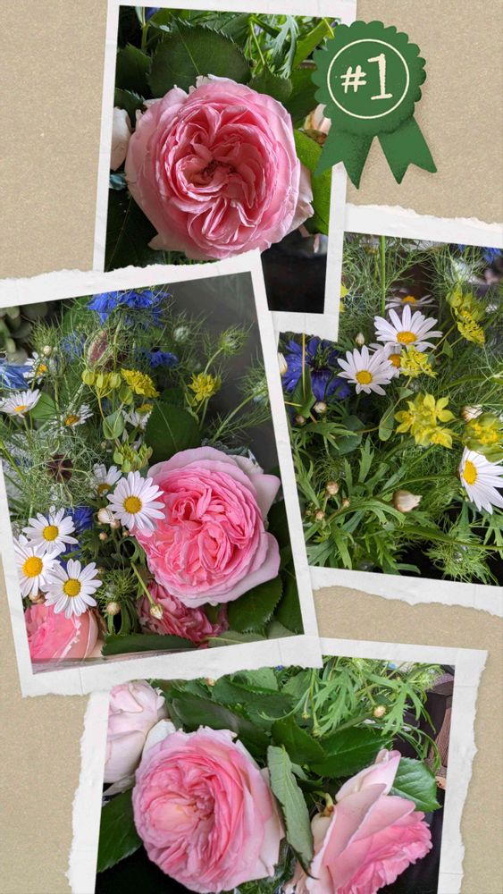 産直の花束💐直径10cm以上の大きな薔薇が4本 ニゲラもマーガレットも沢山(*˘︶˘*).。*♡