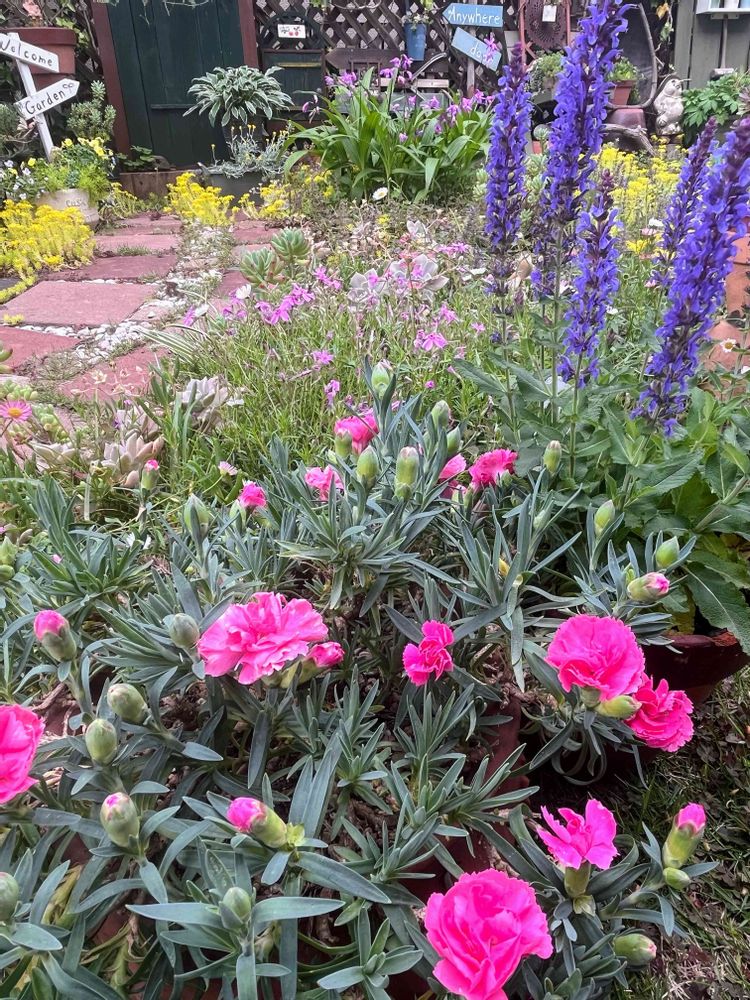 誰もが憧れる、ゆかりんさんの庭。カーネーショうは、一年草だと思っていました。
