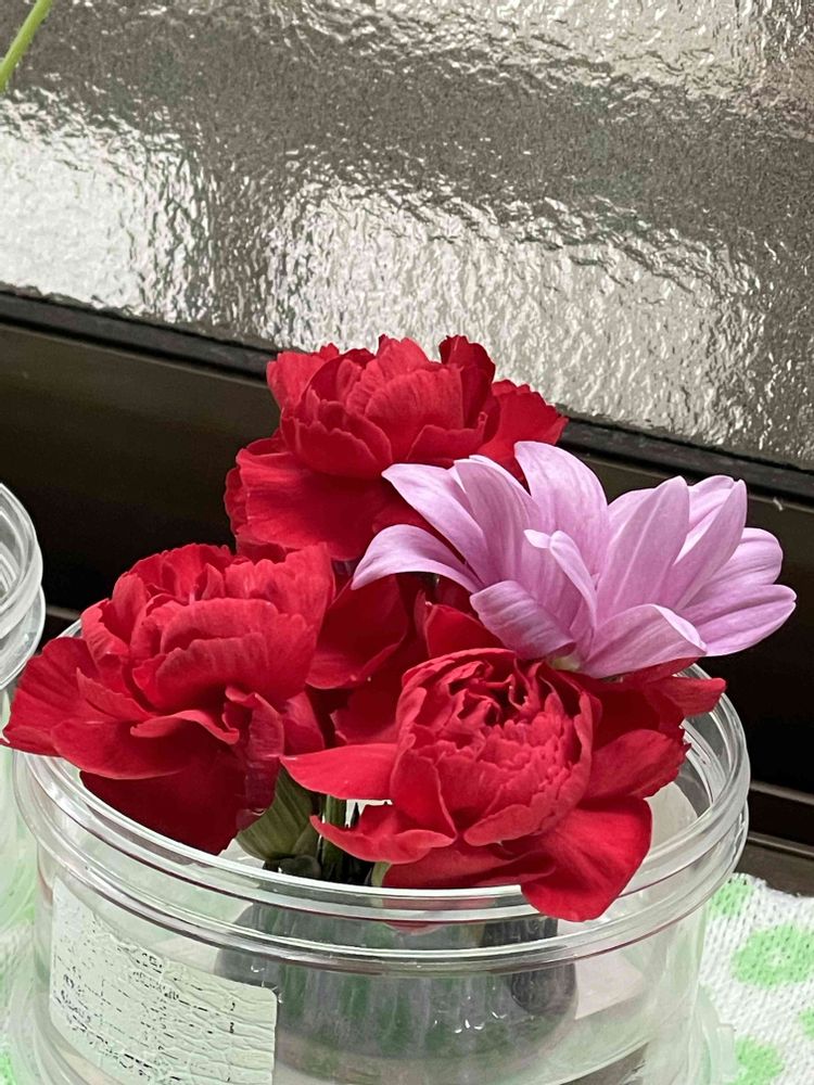 あらあら、ピンクのカーネーション、真っ赤になっちゃうかも😄