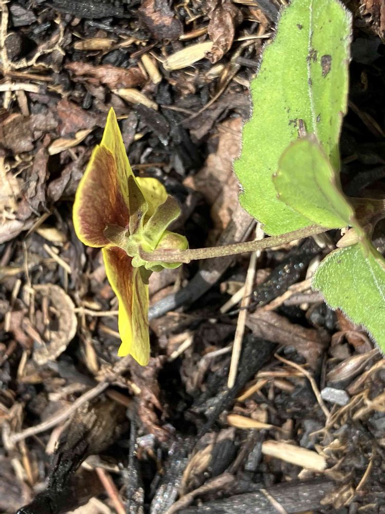 黄色いスミレの花弁の裏化が赤紫色のものは他にも幾つかあるみたい。不思議😊