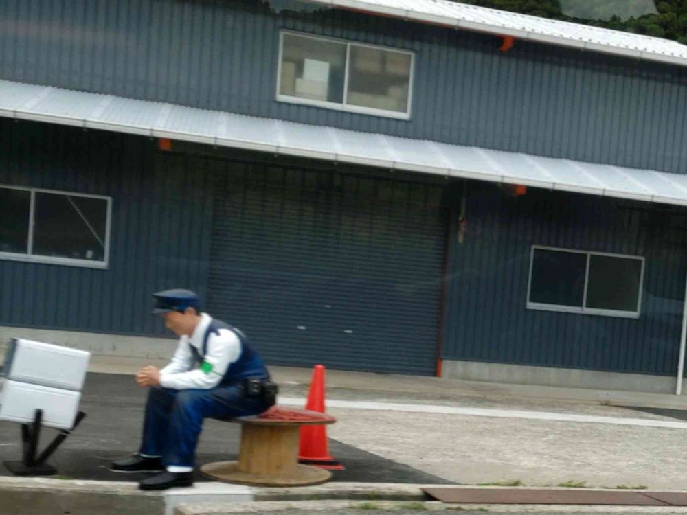 実は等身大のフィギュアです😀 国道の横に置かれていて、近くには偽パトカーや婦警さんも👩✈️