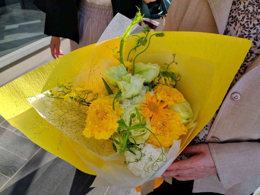 傘寿の色は黄色との事なので、イエローベースの花束を用意しました✨