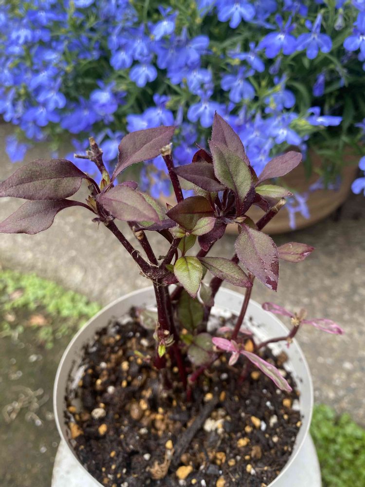 冬中水挿しのまま発根したのを4月の初めにポットに植え付けました。