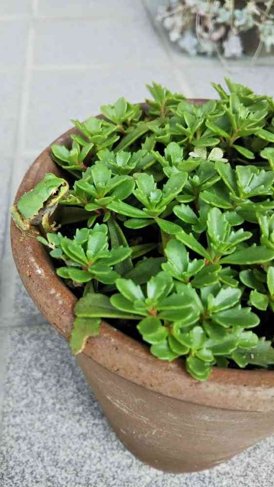 今朝は、とっても小さなカエルさんが遊びに来ていました🐸