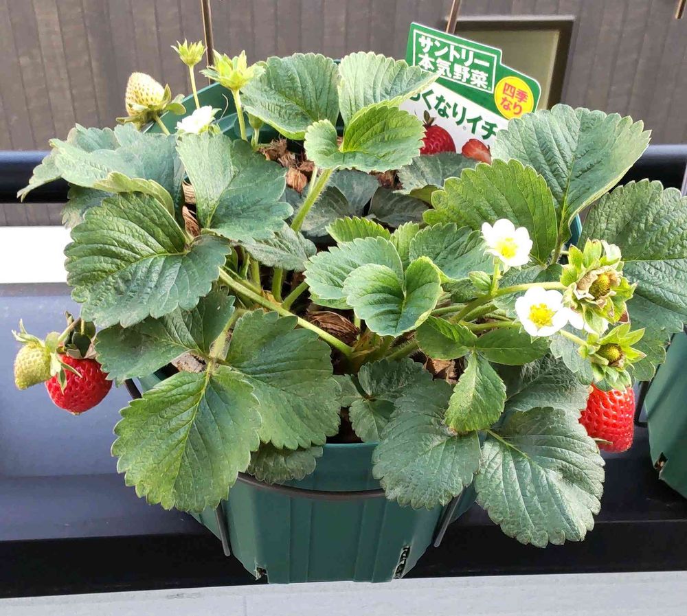 こどものために去年の秋から栽培して初の収穫期到来。のはずが、こどもは今イチゴ嫌いみたいでガッカリ😭