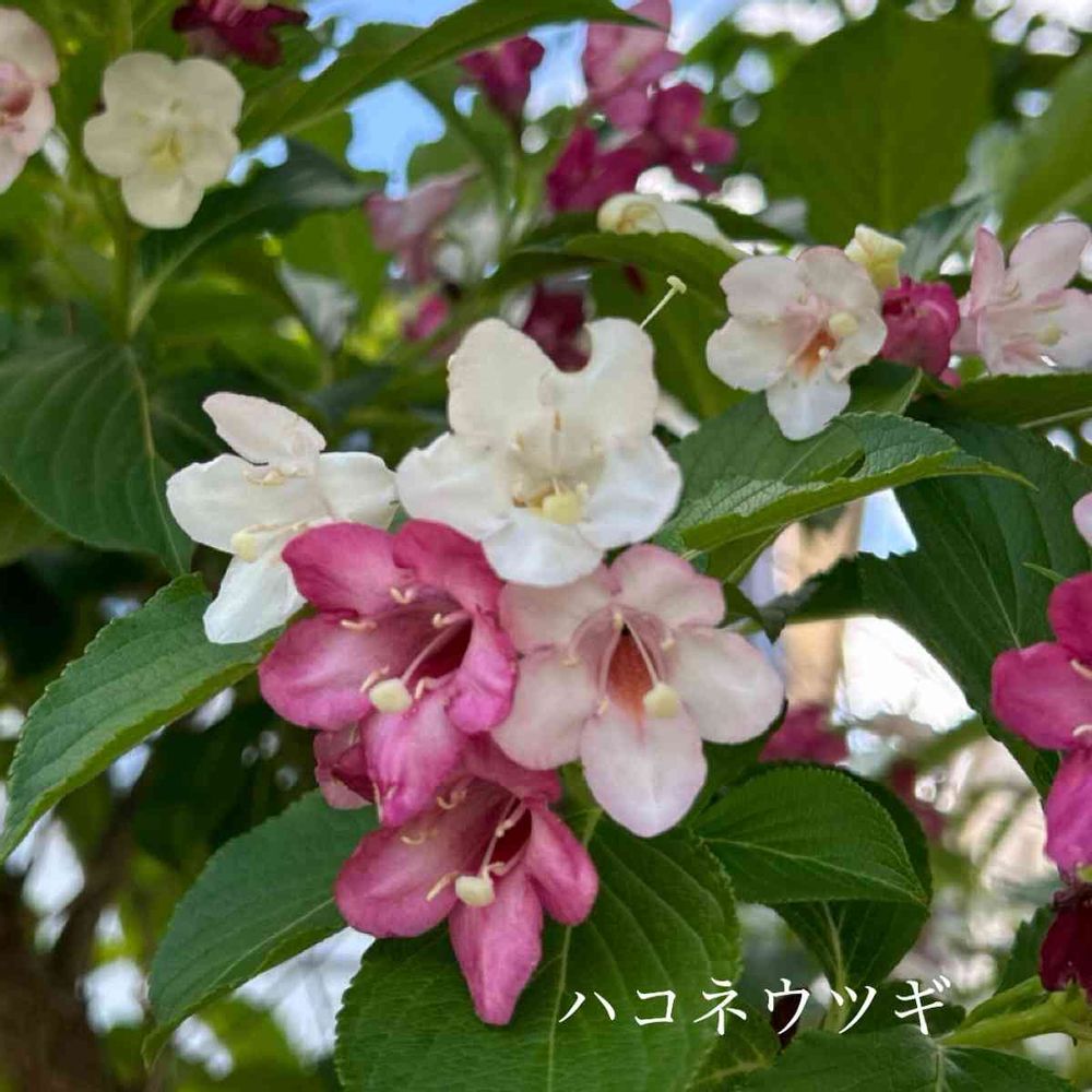 ハコネウツギは、始め白色だけれど、次第に赤に変化するという