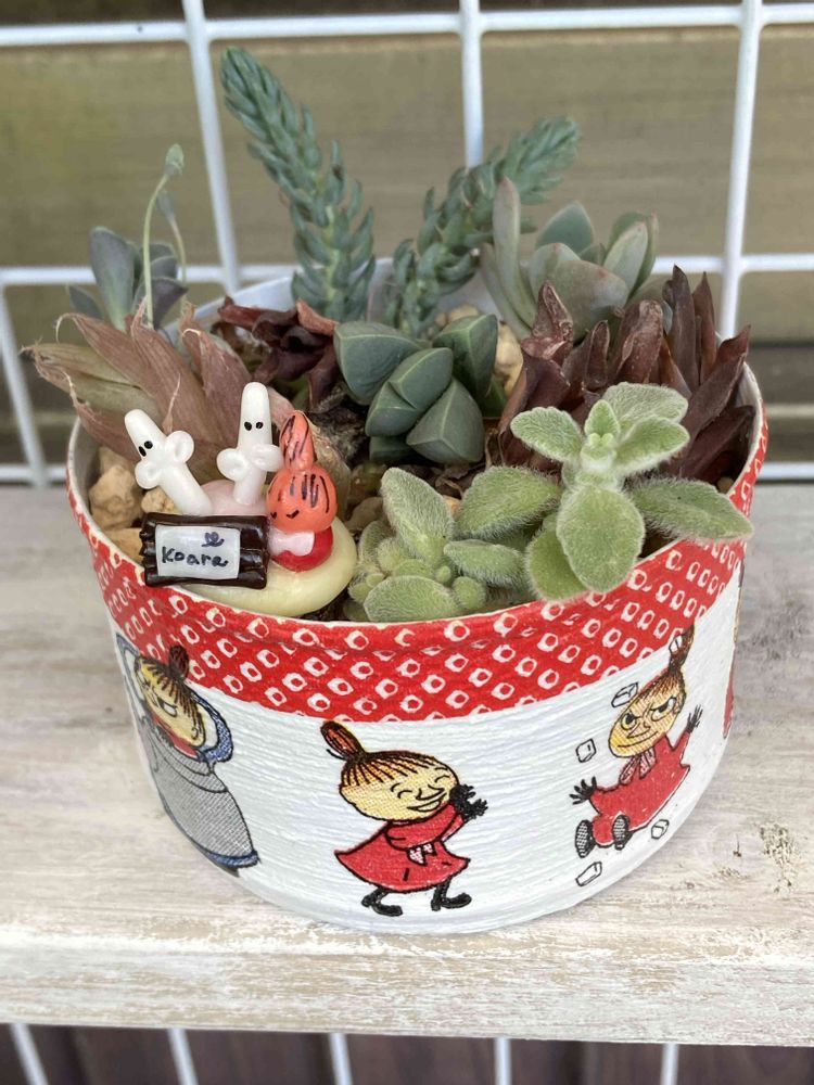 寄せ植えは、セダムなんかも使って、最終的にはぎゅうぎゅうにINしてますね