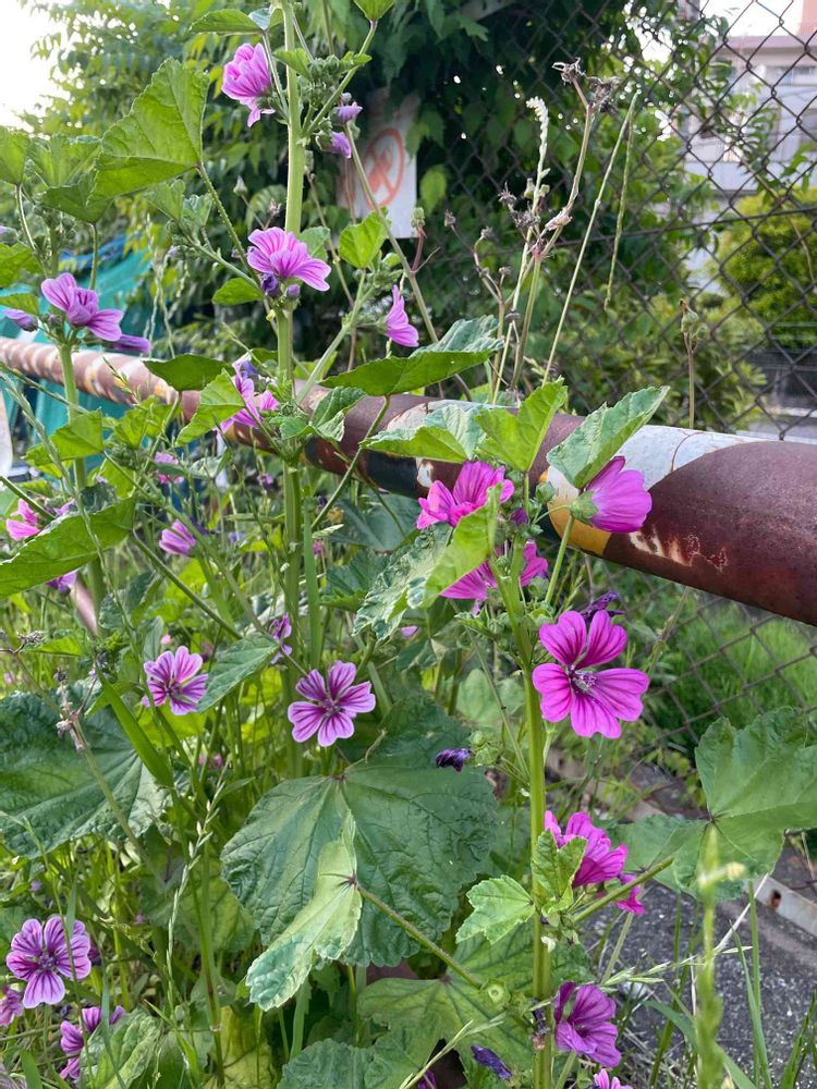 ゼニアオイ 支柱なしでどうしてまっすぐに育つのか不思議な植物
