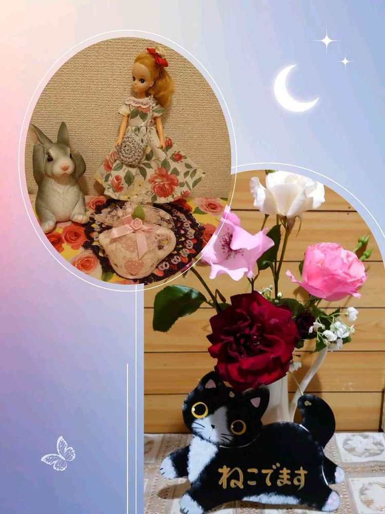 ちょうど作家さんからリカちゃんの薔薇柄のドレスも届いたので、玄関ギャラリーの模様替えとともにリカちゃんも衣替え。