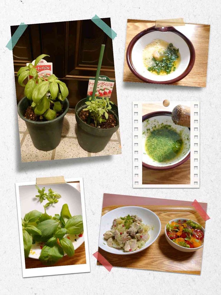 モニター中のS&Bさんのトッピングバジルとおまけのスイートバジルを使って、猫🐱のバジル君、手術頑張れ!の気持ちで応援お料理を。