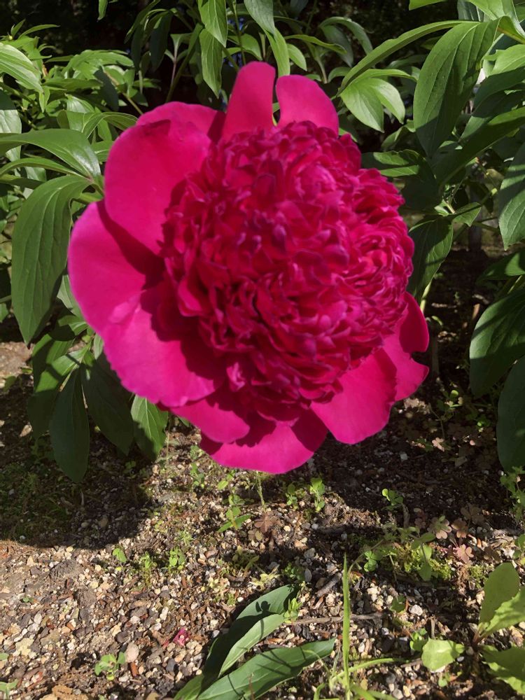 真っ赤な八重咲きの「シャクヤク」です。豪華なお花に見えました!📸🌺🌿🌞✌️