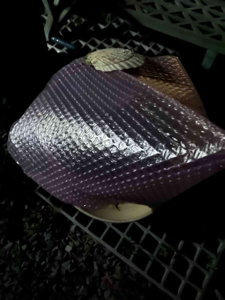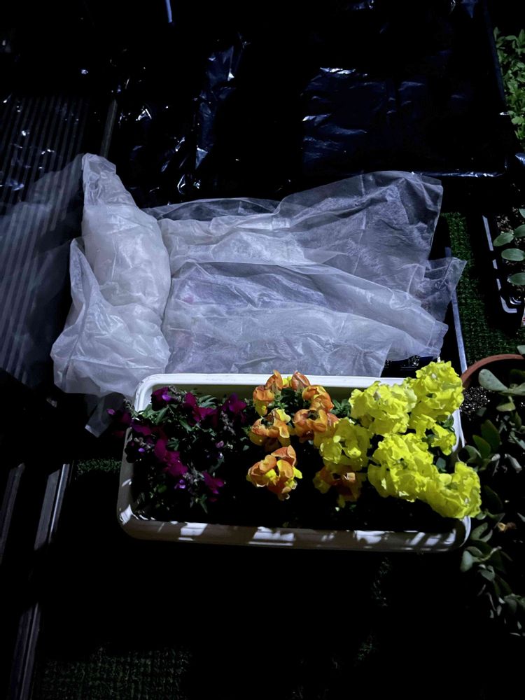 帰宅してから急いで寒さに弱いあれやこれやに可能な限りの防寒対策です。