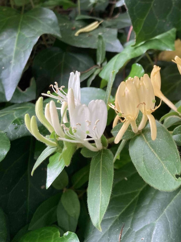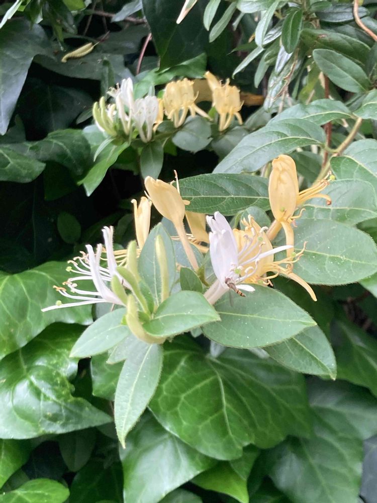 おはようございます! スイカズラ金銀花❣️ スライドしてね!咲き始めの🤍咲き進んだ💛どちらもステキ🥰