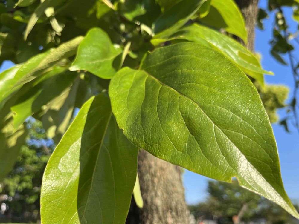 ツヤッツヤの柿の葉っぱ。そういや柿の葉寿司ってのもあったな〜。どこの名物だっけ?