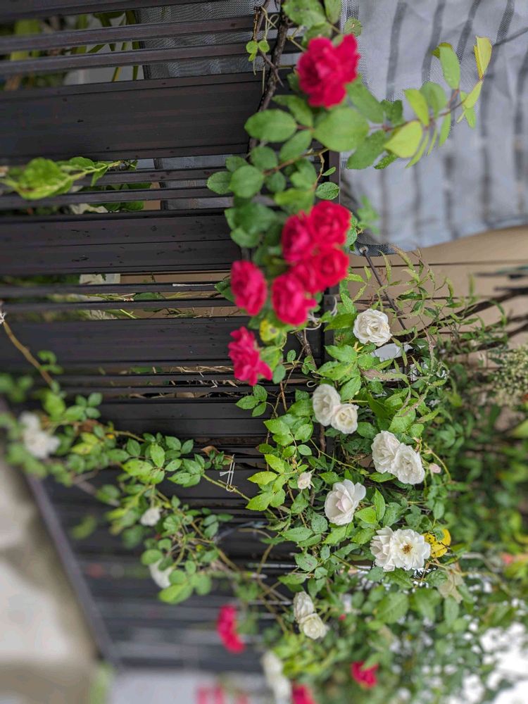🧘♀レッスンヘの道すがら、赤❤️と白🤍のつるバラが目に飛び込んで来ました。