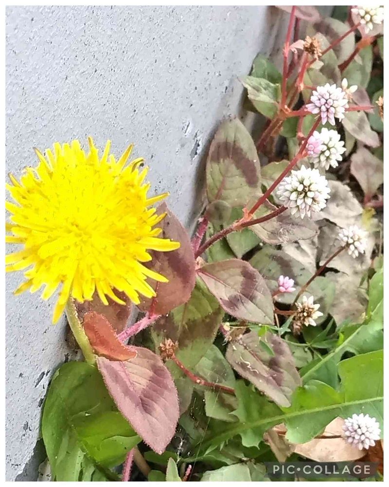 タンポポとヒメツルソバのコラボ