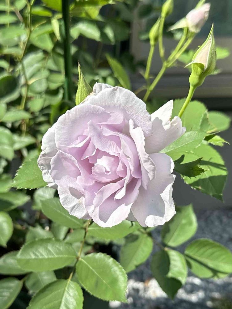 実際は青みの薄紫です💜雨で外弁が傷んでます😭お迎えして1年ほどになりますが、去年より蕾多そう🌹💜香りがまた良いです😍