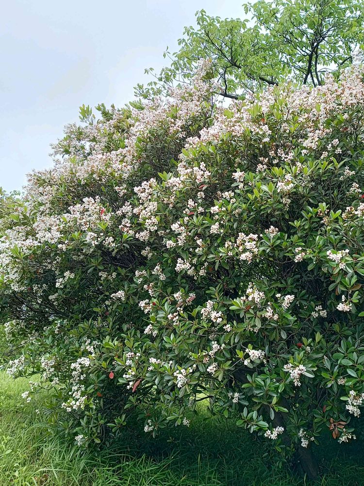 公園にある4mくらいのシャリンバイが満開です。