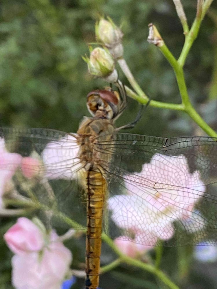 南部桜の花にとまってトンボが寝てた。