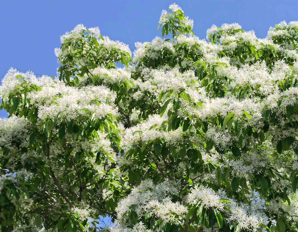 今もちょっとおでかけして来たんですが、道路沿いにもお庭にはも、大小様々なヒトツバタゴの木にほわほわの白いお花が風に揺られて気持ち良さそうでした🍃