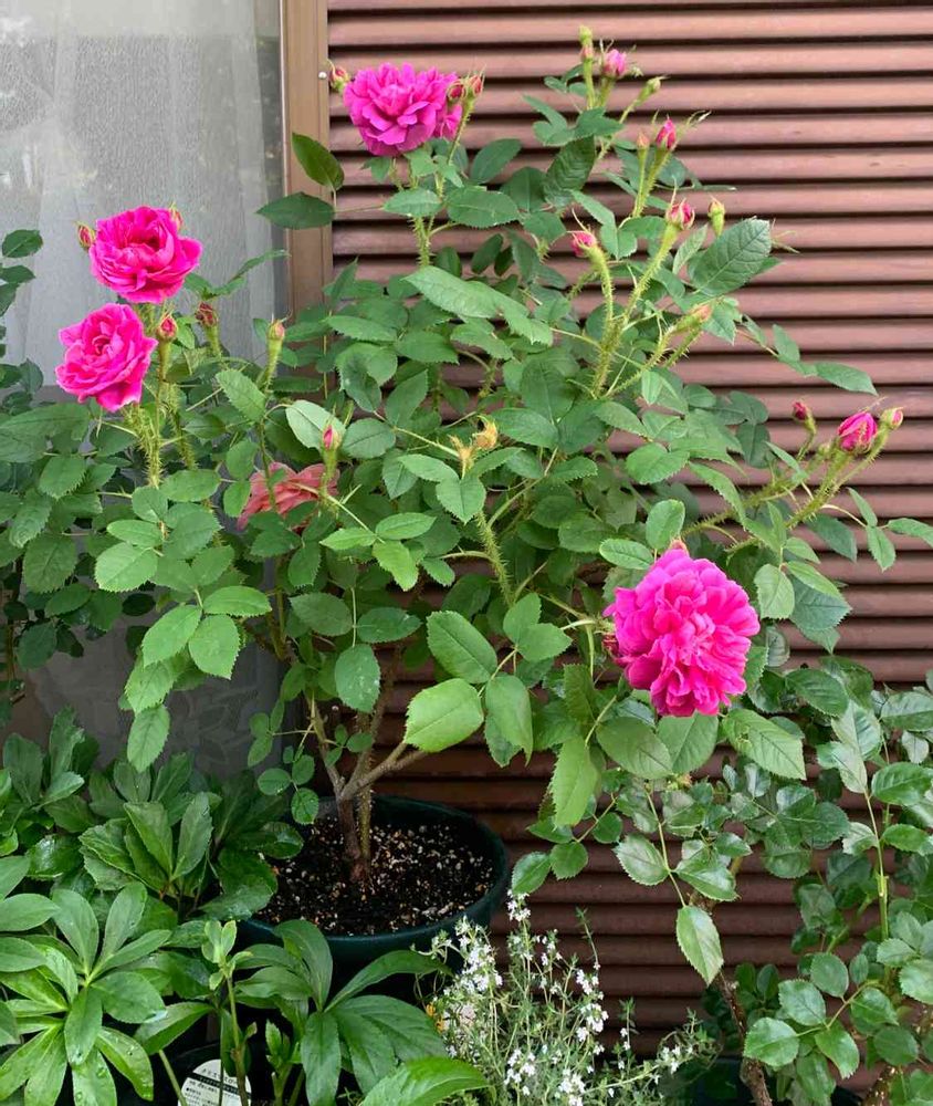 薔薇とハーブ中心の庭。ヘッダーは根津美術館の燕子花です。