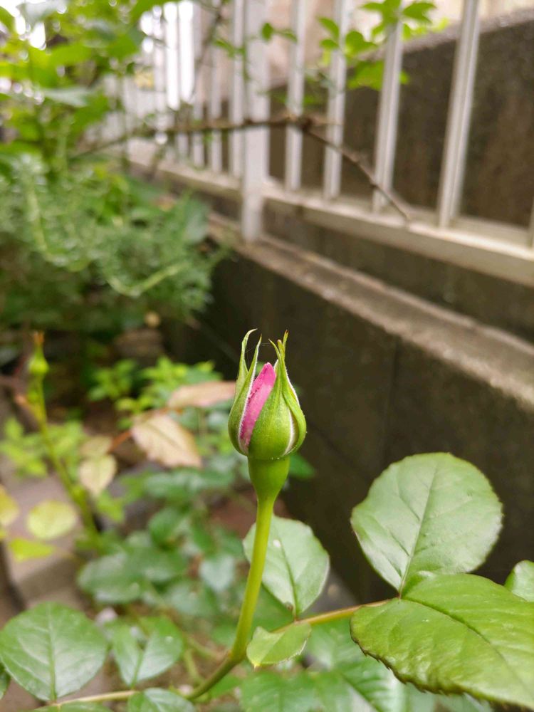 まだつぼみですが、バラの《エンチャンティッドイブニング》が咲きそうです。あーワクワクするわ!