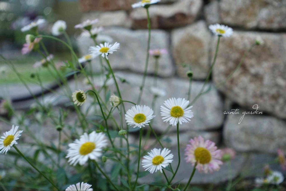 エリゲロンの後ろの石積みなんて海外の風景みたい💕