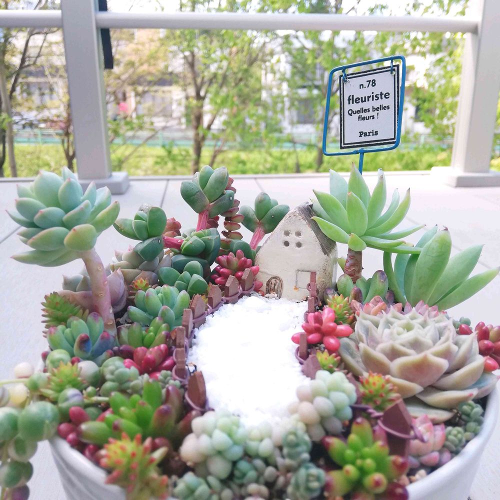 GWに旅行中、日差しで焦げ焦げにしてしまった多肉ちゃんたち😭、少し成長して綺麗になってきたので箱庭用に仕立て直しました😊