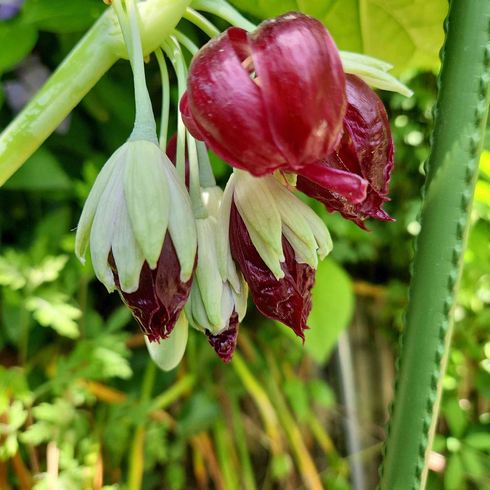 葉の裏側に花が咲く、ハッカクレンの花が、今年も咲いてくれました。