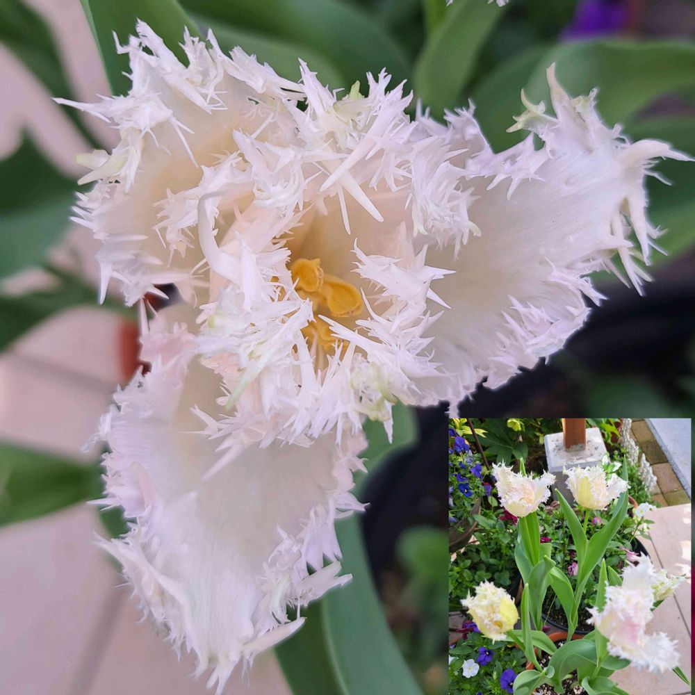 砺波のチューリップフェアで買ってきたサクラフブキも咲きました。先に咲いたカバンナと色も同じの白でとてもよく似ている。購入時の写真ではもう少し色が付いていて違ったはずなのに。でも、これも綺麗。