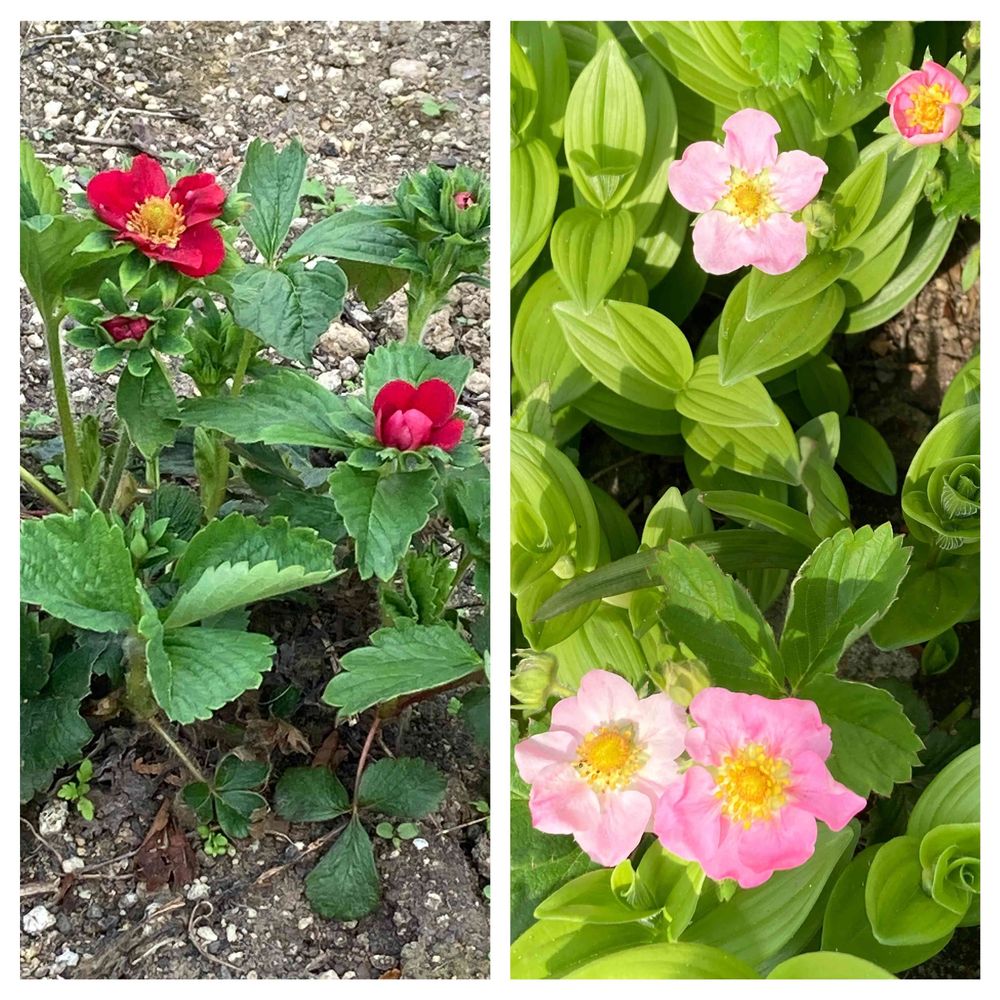 今は🍓の花もレッドやピンク🌸と実だけでなく花のバリエーションもあって楽しいね💕