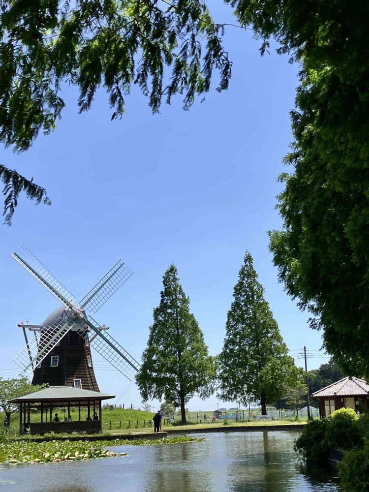 風車の前はスイレン