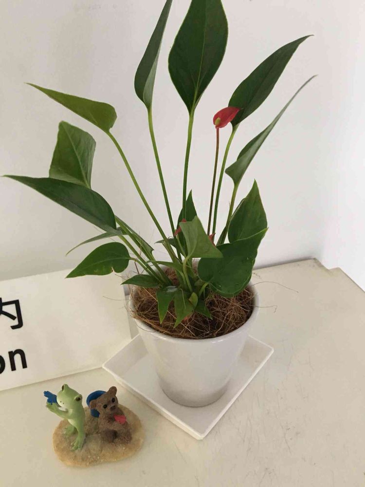マイクロアンスリウムって言うんですって。小さくてかわいいけどやせすぎでしょ❗️と思ってました😛会社のご案内テーブルに置きました。業者さんよ、癒されよ💕