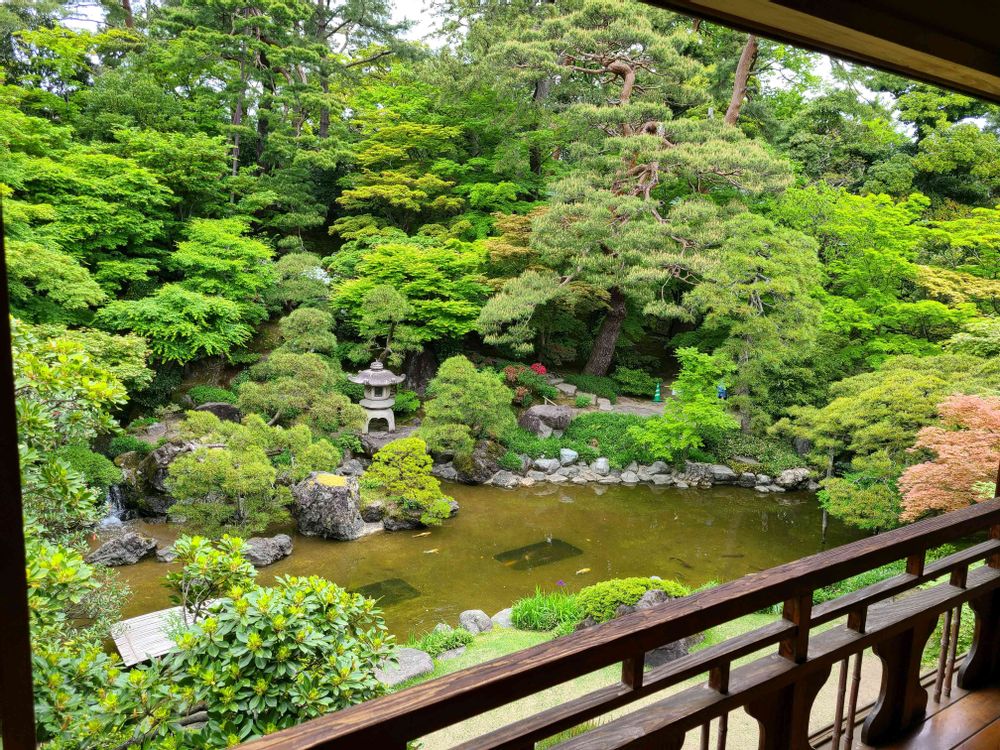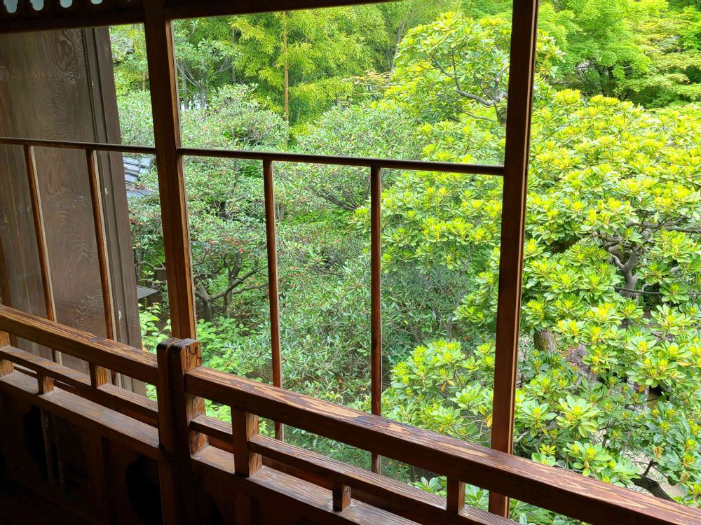 2階から眺める庭は新緑がとても美しく気持ちいい環境でした