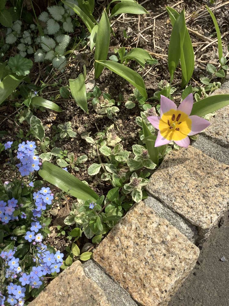 2018年の秋に植えたミニチューリップ サクサティリス🌷毎年葉は出るけど、花が咲かない状態が続いていました。
