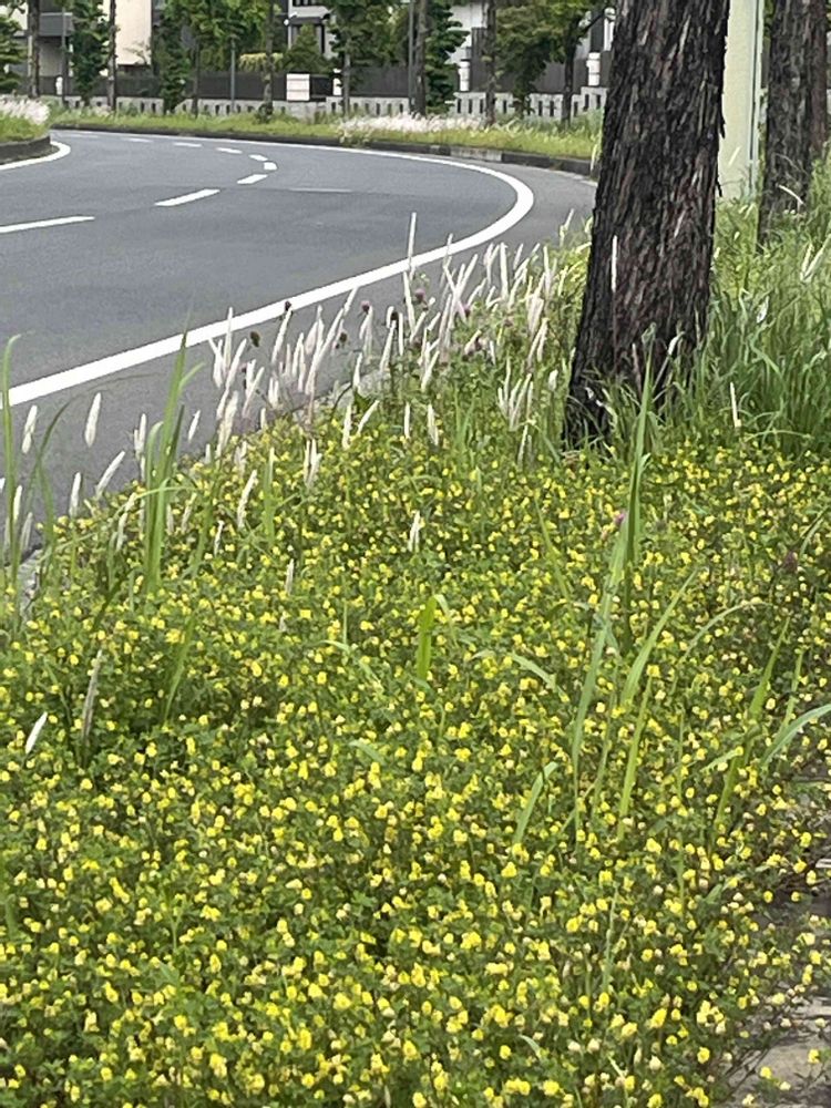 さん、おはようございます。いつもお世話になってます。例年ここは夏場は1mを超える雑草の茂みで、市が草刈りをしてくれないと見通しが悪く大変危険な道路になってしまうのですが、コメツブツメクサの繁殖で背丈の大きな雑草が抑えられていてこのまま行ってくれたらと思います。