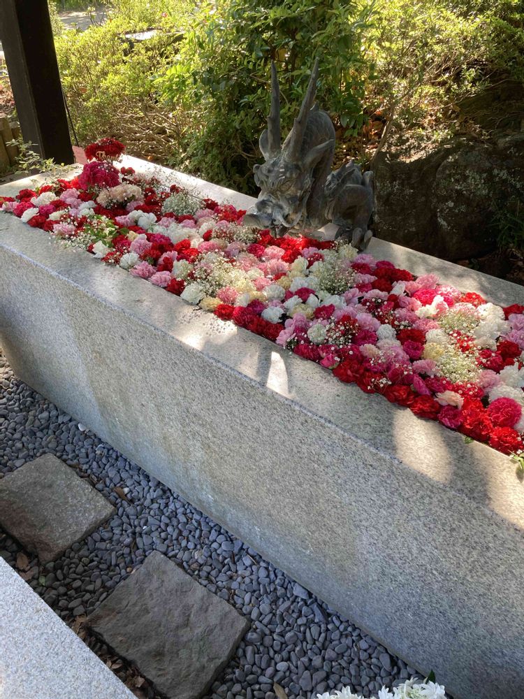 入り口の手水は、母の日にちなんで、カーネーション。