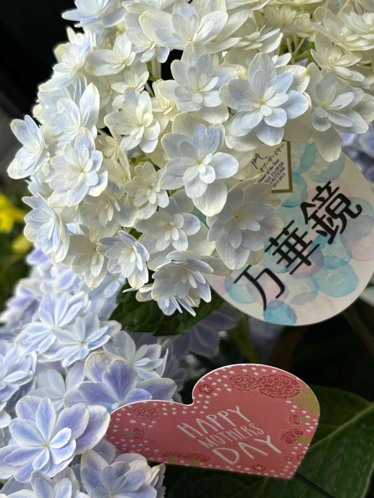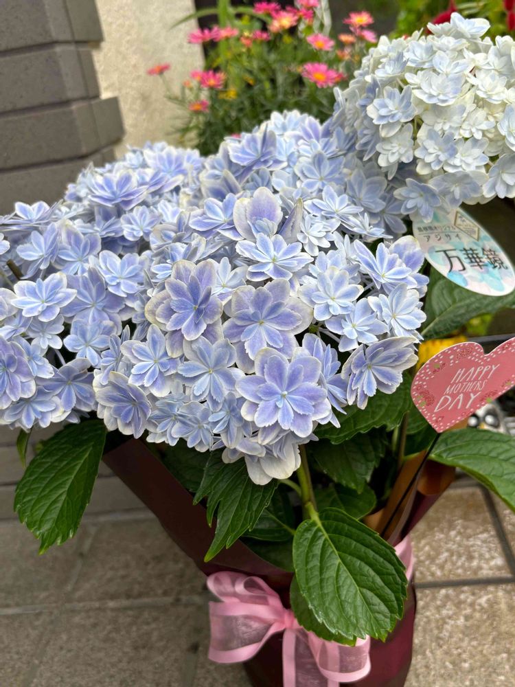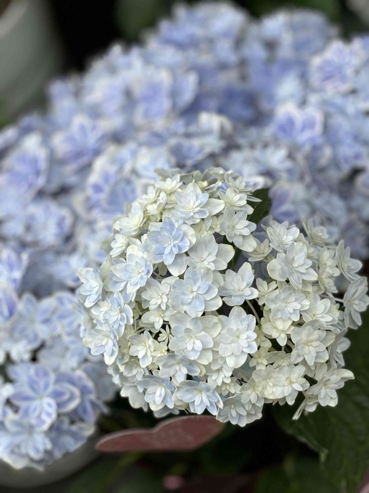 🩵🤍💙何年も店先で👀欲しいなぁ〜❣️と思いながら…でも自分では高価だし上手く育てる自信ないなと😢と諦めていましたが、お店の方が普通の紫陽花と同じで大丈夫ですよ🙆♀️と✨✨