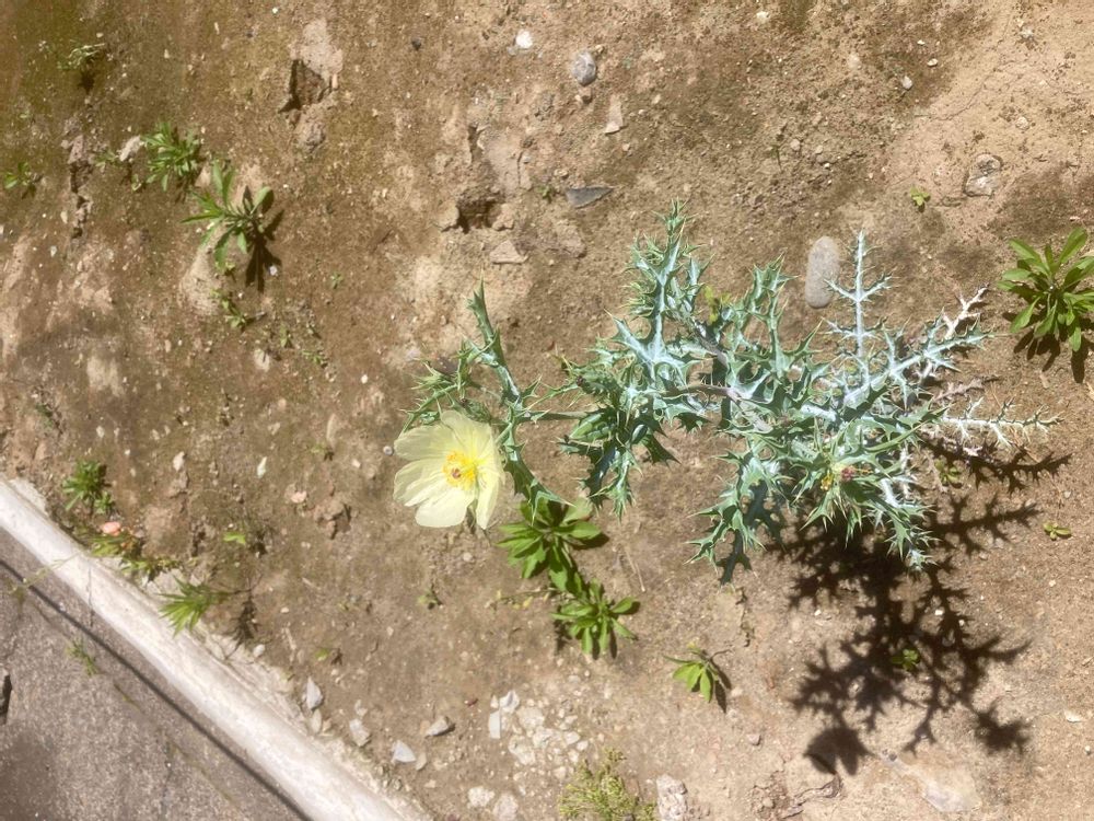メキシコ原産の一年草で、日本には江戸時代に渡来しました。草丈は50~60cmで、茎は直立して上の方で分枝し、葉はつややかで白い斑点が入っていて鋭い刺があります。花は初夏から夏にかけて、艶のある鮮黄色の6弁の花を茎の先に一つ付けます。蒴果は2~3cmほどの楕円形で刺があります。葉や茎を傷つけると有毒な黄色い液がでます。花はケシに似て、葉はアザミに似ることが名前の由来です。